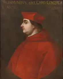 He became apostolic legate to Bologna in 1511 and 1512 and legate to the March of Ancona and Mantua.[4] He took part in the 1513 conclave which elected pope Leo X, that of 1521-22 that elected pope Hadrian VI and that of 1523 that elected pope Clement VII. He ended his career as administrator of Aversa at the start of 1524. He was the great-uncle of cardinals Francesco Gonzaga (1561) and Giovanni Vincenzo Gonzaga (1578).[5] Other cardinals in the family were Francesco Gonzaga (1461), Pirro Gonzaga (1527), Scipione Gonzaga (1587), Ferdinando Gonzaga (1607) and Vincenzo Gonzaga (1615).