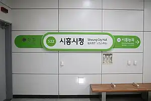 - ↑ "서해철도주식회사" [Siheung City Hall Station]. www.seohaerail.co.kr. Retrieved 2023-07-31.
