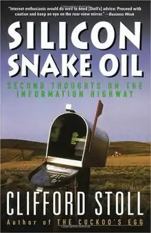 Silicon Snake Oil: Second Thoughts on the Information Highway is a 1995 book written by Clifford Stoll where he discusses his ambivalence regarding the future of how the internet will be used. He wrote the book at a time when he felt the promise of the internet was being over-hyped: "I'm mainly speaking to people who feel mystically lured to the Internet: lotus-eaters, beware. Life in the real world is far more interesting, far more important, far richer, than anything you'll ever find on a computer screen."[1] Stoll later acknowledged that the book was a mistake.