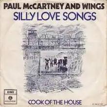 "Silly Love Songs" is a song by the British–American rock band Wings that was written by Paul and Linda McCartney. The song first appeared in March 1976 on the album Wings at the Speed of Sound, then it was released as a single backed with "Cook of the House" on 1 April in the US, and 30 April in the UK. The song, which features disco overtones, was written in response to music critics accusing McCartney of predominantly writing "silly love songs" and "sentimental slush"; however, McCartney has since clarified that the song was actually directed to John Lennon who accused him of writing such songs.[1]