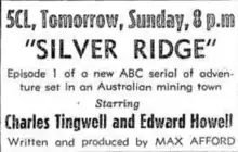 Silver Ridge is a 1954 Australian adventure radio series by Max Afford. It was set in Australia at a time when that was relatively rare. The serial was one of Afford's last productions prior to his death in 1954.[2]