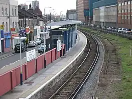 Silvertown was opened in 1863 by the Great Eastern Railway,[3] on the route of the former Eastern Counties and Thames Junction Railway, with two tracks and platforms. A decline in use of the line led to the removal of one of the two tracks in 1980, leaving just one platform to serve trains in both directions. North Woolwich was also reduced to one platform. After third rail electrification of the line in 1986 by British Rail, services were increased and the single-track section became a bottleneck. Prior to closure, the typical Monday to Saturday service frequency westbound towards Stratford and eastbound towards North Woolwich was one train every 30 minutes during the daytime, increasing to one every 20 minutes in the evening; one train called every 30 minutes all day on Sundays.