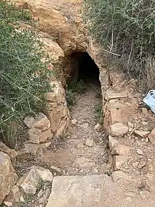 The cave is in Torre-Pacheco, in the Region of Murcia. It is a vertical shaft in karst, in the Cabezo Gordo hill, and overlooks Mar Menor, a saltwater lagoon in the Mediterranean. The cave is found under overhanging rock, 123 meters above sea level, and the shaft has a depth of 18 meters. It was filled with brecciated material in the Late Pleistocene, much of which was removed by 19th-century miners[1] who dug a horizontal tunnel toward the shaft, excavated much of it and left the rubble remains on the hillside.[4] The miners were probably looking for water to wash out iron ore for the mining concessions on the hill.[5])