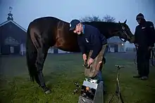 Simon John Curtis (born 15 May 1956) is a farrier, author, lecturer and horse hoof-care expert with a PhD in Equine Physiology and Biomechanics (2017).[1] He is a 4th generation farrier; his family have been farriers and blacksmiths in the Newmarket area for at least 150 years. In over 45 years working as a farrier, he has lectured and demonstrated in more than 30 countries including the USA, Australia, India, Russia, and Brazil.