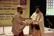 ![]() Surinder Singh (right) of Singh Bandhu receiving the Baba Allauddin Khan Award, 2011 | |