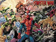 "Sinister War" is a 2021 comic book storyline published by Marvel Comics, starring the character Spider-Man and written by Nick Spencer. The story deals with Spider-Man being in the middle of a conflict between multiple teams of villains, including the Sinister Six and Savage Six, orchestrated by Kindred.[1] The storyline received mixed reviews from critics with many deeming it as an underwhelming conclusion to Nick Spencer's Spider-Man run due to inconsistent art, sluggish pacing, and Kindred.