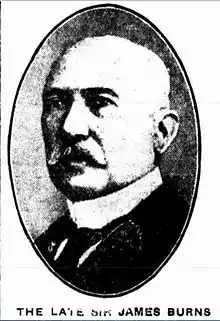 - 1 2 3 4 Serle, Percival. "Burns, Sir James (1846–1923)". Dictionary of Australian Biography. Project Gutenberg Australia. Retrieved 5 September 2007.