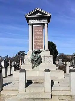 Returning to Australia after a year in England, he resumed his seat in the Melbourne City Council, and became president and councillor of the Working Men's College of Melbourne. On another visit to England in 1913, Gillott died after falling down a flight of stairs at night in Sheffield. He was 74 years of age. His body was returned to Australia and was interred at Melbourne General Cemetery.[1]