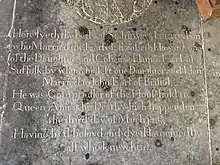 Felton's grave in the chancel of St Mary's Church in Playford, Suffolk