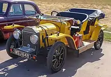 The Edwardian series had bodies largely made of glass fibre that could be fitted to a chassis supplied by the customer. The first in 1969, pre-dating the founding of the Siva company, was the two seat Roadster and four seat Tourer on a Ford Popular chassis. For GBP125 the builder received a body, scuttle and bonnet, four wings, wheel covers and a basic instruction sheet. Extras included a windscreen, weather equipment and upholstery. Complete cars were also available at GBP355. The last cars were made in 1974 after around 80 Tourers and 25 Roadsters had been made.[2] A Tourer named Bessie first appeared in Doctor Who and the Silurians (1970). She provided a transport solution throughout the era of the Third Doctor, but was also used by the Fourth, and by the Seventh. The first Edwardians were followed by the Raceabout and San Remo on a VW Beetle frame and Parisienne on a Citroen 2CV. 126 Edwardian kits were produced.[1]
