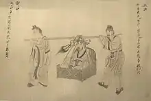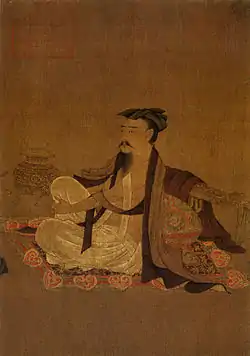 The Liang dynasty (502–557), also known as the Southern Liang dynasty, was the third of the Southern dynasties. Founded by the Xiao family, its first emperor was Liang Wu Di. In 531, his son Xiao Gang (later Emperor Jianwen of Liang) became Crown Prince, in which position Xiao Gang both practiced poetry and became a patron of poets. Of this poetic activity, especially important is the anthology New Songs from the Jade Terrace, compiled by Xu Ling (507–83), under the patronage of Crown Prince Xiao Gang (Later known as Emperor Jianwen).[18] The "Jade Terrace" is at least in part a reference to the luxurious palace apartments to which upper-class women were often relegated, one of the main conventional images being that of a beautiful concubine languishing away in lonely confinement, bereft of love. The New Songs from the Jade Terrace has been popularly translated into English. The collection contains over 600 pieces focused on the ideals of feminine beauty, and some of the poems are matter-of-factly homoerotic, describing the beloved young man involved in much the same terms as the female beloved is in other pieces. In other cases, a "hint of fetishism" is shown in poetic verses describing the objects associated with the men or women described in the poems; that is, their bedrooms and feast halls, the musical instruments, lamps or mirror-stands which they handle, or the fine stationary upon which they write their love notes.[19]