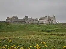 There is a stableyard with a brewhouse and harness room, to the north of the main buildings, and a dovecote dating to the 18th century beside the house.[2][6] The south wing is partially built on an old, pre-Viking burial ground, thought to be Pictish.[3][7]