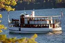The Judge Ben Wiles tour boat heading south on Skaneateles Lake