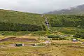 Skutulsfjörður is the westernmost fjord branching off the major Icelandic fjord of Ísafjarðardjúp. The town of Ísafjörður is located in the fjord. Two main valleys enter from Skutulsfjörður, Engidalur and Tungudalur, separated by the mountain Kubbi. On the far north side of Engidalur is the Ísafjörður cemetery. The river Langá flows through Engidalur. In Tungudalur, the towns golf course and ski areaThere is a golf course and ski area in Tungudal, but from it the Vestfjarðagöng tunnel is dug across to Botnsdalur in Súgandafjörður and Breiðdalur in Önundarfjörður. Dagverðardalur or Dögurðardalur, as it was named in Gísla saga, runs up from Tungudal, but from there the main road used to run south across Breiðadalur and Botnsheiði. Furthermore, Seljalandsdalur lies up from Skutulsfjörður, but it used to be the main ski area of Ísfjörður.[1]