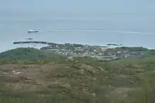 Skutvika or Skutvik is a small village in the municipality of Hamarøy in Nordland county, Norway. The village is situated at the southwestern extreme of the Hamarøya peninsula, about 90 kilometres (56 mi) north of the town of Bodø, 95 kilometres (59 mi) southwest of the town of Narvik, and 40 kilometres (25 mi) south of the town of Svolvær. To the west and south of Skutvik is the Økssundet, a sound connecting the Sagfjorden and Vestfjorden. The landscape in the immediate vicinity of the village is dominated by hills, while further north a row of mountains rises up to 950 metres (3,120 ft) above sea level.