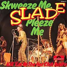 "Skweeze Me, Pleeze Me" is a song by the British rock band Slade, released in 1973 as a non-album single.[1] It was written by lead vocalist Noddy Holder and bassist Jim Lea, and produced by Chas Chandler. It reached No. 1 in the UK, giving the band their fifth number one single, and remained in the charts for ten weeks.[2] The song was certified UK Silver by BPI in July 1973.[3] The song would be included on the band's 1973 compilation album Sladest.[4]
