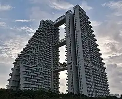 The complex features two towers which are connected by three aerial walkways.[10] The design of the complex allows for cross-ventilation and multiple exposures to each unit.[11][12] The complex is inspired by Habitat 67, which was also designed by Safdie.[13]