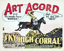 Sky High Corral is a 1926 American silent Western film directed by Clifford Smith and starring Art Acord, Marguerite Clayton, and Duke R. Lee.[1][2]