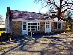 The Skyline Commissary (also known as the Rock Store) is a historic building in Skyline, Alabama. It was built in 1935 as part of Skyline Farms, a project of the Resettlement Administration, a New Deal program that sought to provide jobs for unemployed farmers on collective farms.[2] The commissary sold food to both co-op members and surrounding residents, and served as the hub of social activity for the community. The co-op operated until the end of World War II, when it was sold to private owners. The commissary continued to operate as a general store for the community until the early 2000s. It was converted into a heritage museum in 2005. Like other New Deal structures, the commissary makes heavy use of local materials. The walls are of locally quarried limestone, and the façade features a pedimented portico covering double entry doors. The entry is flanked by two large, multi-paned fixed windows. A gable-roofed ell was added to the north of the rear side in 1937.[3] The house was listed on the National Register of Historic Places in 2013.[1]