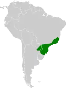 The slaty-breasted wood rail is found in southeastern Brazil from southern Minas Gerais and Espírito Santo south and west into eastern Paraguay and northeastern Argentina. It generally inhabits somewhat wet forest and woodland, often in swampy areas or along streams, but usually avoids open marshes.[4]