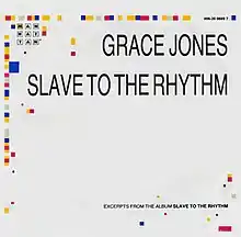 "Slave to the Rhythm" is a song by Jamaican singer, model and actress Grace Jones. It was released in October 1985 from Jones' seventh album, Slave to the Rhythm (1985), on which it is titled "Ladies and Gentlemen: Miss Grace Jones". It was produced by Trevor Horn and written by Horn, Bruce Woolley, Stephen Lipson and Simon Darlow. The song peaked at number 12 in the UK and number one on the US Billboard Hot Dance Club Play chart. Its music video was directed by Jean-Paul Goude.