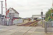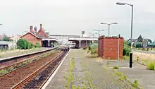 The Great Eastern Railway wanted to build a line from Cambridge to York, which would have passed through Sleaford and Bourne, but Parliament would not allow it.[12] The GNR submitted a proposal for a line between Bourne and Sleaford, which, after amendments to the route, was approved in 1865 and opened in 1872.[12][13] Next came the Great Northern and Great Eastern Joint Railway which opened from Spalding through Sleaford to Ruskington and from there to Lincoln Central in 1882. Kirk and Parry, Sleaford-based building contractors, built the line, while the Ruskington-based builders Pattinson's constructed the new stations along the route.[13] The line was designed to transport freight, which necessitated an avoiding line around Sleaford;[14] Sleaford station was also extended.[15] The last new line through Sleaford ran to RAF Cranwell and opened in 1916.[16]