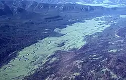 It rises in southern Montana, in the Absaroka-Beartooth Wilderness in the Beartooth Mountains, and flows southwest, into Yellowstone National Park and into Wyoming. It discharges to the Lamar River near Tower junction within Yellowstone National Park. In turn the Lamar River forms a confluence with the Yellowstone River inside of Yellowstone National Park. Slough Creek is a mildly alkali watercourse.[4] The Slough Creek watershed consists of mixed fir forest, sage flats and grassland. These plant communities support considerable faunal diversity, including coyote and bison.[5]