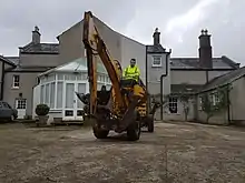 A smalley is a type of small excavator with two wheels on a single axle. It had no drive to the wheels, moving instead by pulling itself along using the excavator or 'backhoe' arm. Once in location the machine worked as any other 360° excavator, with two fixed-adjustable front legs, and two rear legs which could be mechanically height-adjusted from within the cab. For larger distances the machine could be towed on the road at moderate speeds using a suitable vehicle such as a Landrover or large van.