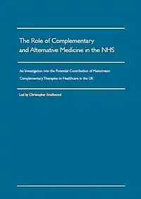 The Smallwood Report, officially entitled The Role of Complementary and Alternative Medicine in the NHS: An Investigation into the Potential Contribution of Mainstream Alternative Therapies to Healthcare in the UK, was a 2005 report promoting the use of so-called "alternative medicine" in Britain's taxpayer funded National Health Service, as a cost-effective and efficacious alternative to evidence-based medicine. The report was written by economist Christopher Smallwood, commissioned by Charles, Prince of Wales, and funded by disgraced Tory politician Dame Shirley Porter.[1] The report recommended that a number of treatments be made available on the NHS, including acupuncture, homoeopathy, manipulation therapies and herbal remedies. Graeme Catto wrote the introduction. Smallwood is an economist with no background in healthcare.