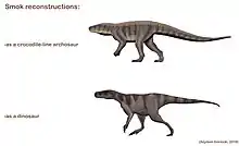 Smok (meaning "dragon" in Polish) is an extinct genus of large carnivorous archosaur. It lived during the latest Triassic period (latest Norian to early Rhaetian stage, between 208.5–205 Ma). Its remains have been found in Lisowice, southern Poland. The only species is Smok wawelski (after the Wawel Dragon, a dragon from Polish folklore) and was named in 2012. It is larger than any other known predatory archosaur from the Late Triassic or Early Jurassic of central Europe. The relation of Smok to other archosaurs has not yet been thoroughly studied; it may be a rauisuchid, prestosuchid, an ornithosuchid pseudosuchian (part of the crocodilian lineage of archosaurs) or a theropod dinosaur (part of the bird/dinosaurian lineage of archosaurs).[1]