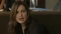 Detective Benson (Hargitay) shocked, in the aftermath of the SVU squadroom shooting.