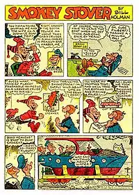 Smokey Stover is an American comic strip written and drawn by cartoonist Bill Holman from March 10, 1935, until he retired in 1972[1] and distributed through the Chicago Tribune. It features the misadventures of the titular fireman.