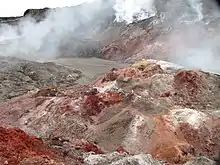 The Smoking Hills are located on the east coast of Cape Bathurst[1] in Canada's Northwest Territories, next to the Arctic Ocean and a small group of lakes. The cliffs were named by explorer John Franklin,[2] who was the first European to see them on his 1826 expeditions. They contain strata of hydrocarbons (oil shales), which have been burning continuously for centuries.