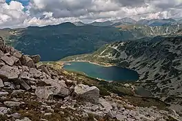 The Smradlivo Lake (Bulgarian: Смрадливото езеро [smrɐdˈlivoto ˈɛzɛro]) is a glacial lake located in the central section of the Rila mountain range, south-western Bulgaria. It is the second of the five Smradlivi Lakes and is situated at an altitude of 2,298 m in a hanging valley facing the valley of the Rilska River to the north between the summits of Rilets (2,713 m) to the south-west and Kyoravitsa (2,612 m) to the south.[1] It falls within the boundaries of the Rila Monastery Nature Park.[2]