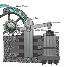 Diagram of a trip-hammer forge, not unlike the one established at the confluence of Little Laurel and Big Laurel Creeks in Snowville during the mid-1800s.