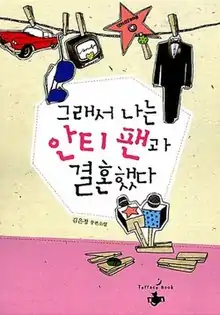 So I Married an Anti-fan[lower-alpha 1] (Korean: 그래서 나는 안티팬과 결혼했다; RR: Geuraeseo naneun antipaen-gwa gyeolhonhaetda)[lower-alpha 2] is a South Korean novel written by Kim Eun-jung, first published on September 27, 2010, and was reissued as a two-part full-length version on February 6, 2016.[1][2][3] Exploring the nature of stardom and fandom culture in the K-pop scene, the novel centers on the unlikely relationship between a magazine reporter and a famous idol of whom the former became an ardent anti-fan after an eventful encounter.