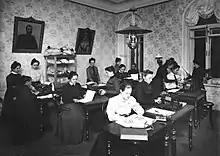 Through the efforts of Baron von Buxhoeveden, and also thanks to the patronage of Grand Duchess Alexandra Iosifovna, the experience of arranging Houses of Diligence was quickly spread throughout the empire.[18][22] By the time of the October Revolution, which put an end to the public solution to the problems of poverty, there were hundreds Houses of Diligence, they were represented in most large cities of Russia.[23][24]