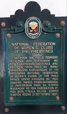 De Veyra later aided in the consolidating of all the woman's clubs and associations in the Philippines. On February 5, 1921, 300 women's associations established the National Federation of Women's Clubs of the Philippines.[1]