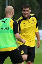 On 24 May 2013, the eve of the 2013 Champions League Final between Bayern Munich and Borussia Dortmund, Papastathopoulos completed a €9.5 million transfer to Dortmund, agreeing to a five-year contract through to 2018.[24][25][26] Upon signing, he spoke about the deal, saying, "Money did not play a role in my decision to join Dortmund. My own future was all that mattered and I am convinced that I made the right decision."[27] With centre-back Felipe Santana departing Dortmund for Schalke 04, Papastathopoulos began as the effective third-choice behind tandem Neven Subotić and Mats Hummels. Borussia Dortmund Sporting Director Michael Zorc expressed his satisfaction with the deal: "We are delighted that Sokratis has decided to join Borussia Dortmund. He is a flexible player capable to play in a variety of positions in defence who we believe has tremendous potential."[28]