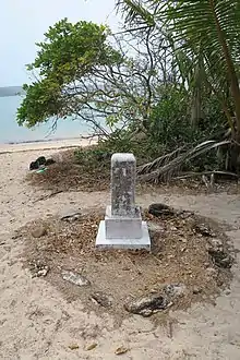 Jardine was not the first to be buried in the Somerset Grave Site (labelled section one when the parcel of land was leased as Special Lease 2894 in early 1920 by Frank's son, Bertie Jardine).[57] The earliest known burial was that of Cancan, a pearl diver, dating to 1890. Japanese pearl diver Kobori Itchimatsu was also buried there in 1909.[58][59][60] Both graves are situated in the north area of the site. The pearl diving industry was important in Torres Strait and to the Queensland economy, and came to be dominated by Japanese divers after 1891. Kobori Itchimatsu came from the village of Nishi Mukai in Wakayama prefecture, an area that provided 80 per cent of the 7000 Japanese who left their country to become pearl divers.[1][61][62][63]