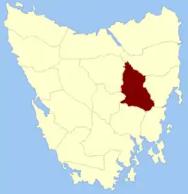 The County of Somerset, bounded on the north by a portion of the river South Esk, on the east by the Eastern tier to the Macquarie river, and thence by a line to Beaumont's rivulet, and by that rivulet to its junction with the Little Swanport river; on the south by the Little Swanport river, and by the southern boundaries of the parishes of Brisbane, Oatlands, Dulverton and Exmouth to the river Clyde, and on the west by a portion of the river Clyde, by lakes Crescent and Sorell, and by a line from lake Sorell to Wood's lake, and thence by the Lake river to its junction with the South Esk.