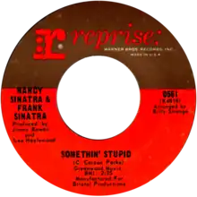 "Somethin' Stupid", or "Something Stupid", is a song written by C. Carson Parks. It was originally recorded in 1966 by Parks and his wife Gaile Foote, as Carson and Gaile. A 1967 version by Frank Sinatra and his daughter Nancy Sinatra became a major international hit, reaching number one on both the Billboard Hot 100 chart and the UK Singles Chart.[2] In 2001, a cover version by British vocalist Robbie Williams and Australian actress Nicole Kidman reached number one in the UK Singles Chart.