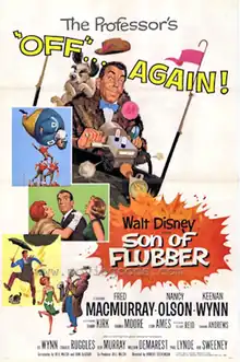 Son of Flubber is a 1963 American science fiction comedy film directed by Robert Stevenson and produced by Walt Disney Productions. It is the sequel to The Absent-Minded Professor (1961) and the first sequel to a Disney film. Fred MacMurray reprises his role from the previous film as Ned Brainard, a scientist who has perfected a high-bouncing substance, Flubber ("flying rubber"), that can levitate an automobile and cause athletes to bounce into the sky. In addition to MacMurray, Nancy Olson, Keenan Wynn, Ed Wynn, Elliott Reid, and Tommy Kirk also co-star, reprising their roles from the previous film.