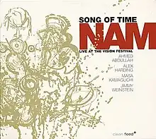 Song of Time: Live at the Vision Festival is a live album by the cooperative jazz quartet known as NAM, featuring trumpeter Ahmed Abdullah, saxophonist Alex Harding, bassist Masa Kamaguchi, and drummer Jimmy Weinstein. It was recorded on May 28, 2001, at the Vision Festival in New York City, and was released in 2004 by Clean Feed Records.[1][2][3] NAM had previously appeared on the 1999 album Actual Proof.[4]