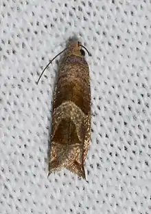 The wingspan is 14 mm. Adults are on wing from March to October.[2]