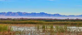 The Sonny Bono Salton Sea National Wildlife Refuge is located in the Imperial Valley of California, 40 miles (64 km) north of the Mexican border. Situated at the southern end of the Salton Sea, the refuge protects one of the most important nesting sites and stopovers along the Pacific Flyway. Despite its location in the Colorado Desert, a subdivision of the larger Sonoran Desert, the refuge contains marine, freshwater, wetland, and agricultural habitats which provide sanctuary for hundreds of birds and wetland species, including several that have been listed as endangered or sensitive by the U.S. Fish and Wildlife Service.[1]