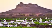 Depending on the season, other common birds to find on the refuge include: California brown pelican, American white pelican, black skimmer, mountain plover, eared grebe, ruddy duck, yellow-footed gull, northern shoveler, Ross’s goose, snow goose, Gambel's quail, roadrunner, cattle egret, white-faced ibis, American kestrel, marsh wren, sandhill crane and hundreds more. Bird species of concern on the refuge include:[1]