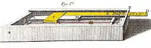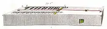 The original illustration of this table-top device included the "proportions" of an "exact division of the notes" into the larger or smaller intervals characteristic of the unequal temperament preferred by Loulié.