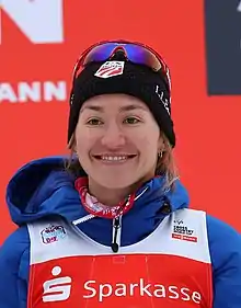 Caldwell got her first victory in the World Cup during the 2016 edition of the Tour de Ski. She won the classic sprint in Oberstdorf, Germany on January 5, 2016.[1] With this victory, Caldwell was only the second American woman with a victory in the World Cup, the other being Kikkan Randall. Caldwell is also the first American woman to win a classical World Cup event.[7]