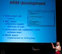 - ↑ "Sophie Wilson: ARM And How Making Things Simpler Made Them Faster & More Efficient". Hackaday. 8 May 2018. Retrieved 11 December 2023.